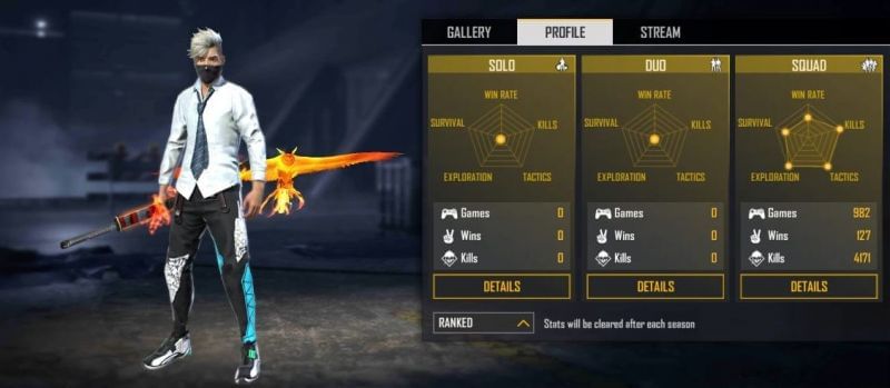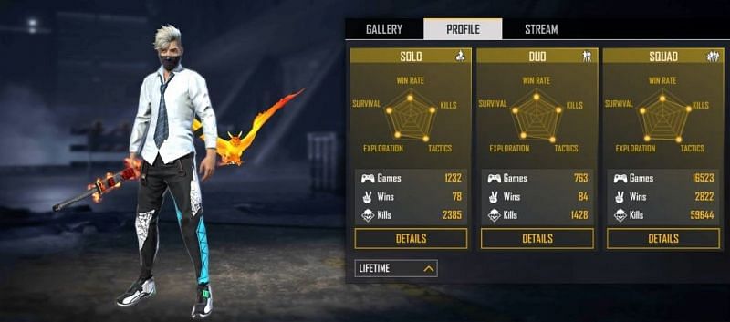 Coming to the duo mode, he has 84 Booyahs in 763 games. The famous content creator has racked up 1428 kills at a good K/D ratio of 2.10.
