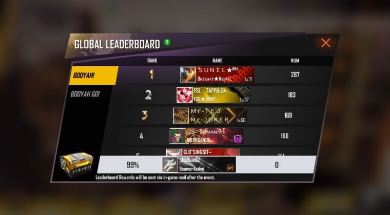Throughout the Booyah Day event, the top 100 players with the highest number of Booyahs will receive a special Booyah Day Pin. Also, the top 100 users with the most Booyah Go!'s played will receive a Booyah Day 2020 Avatar.