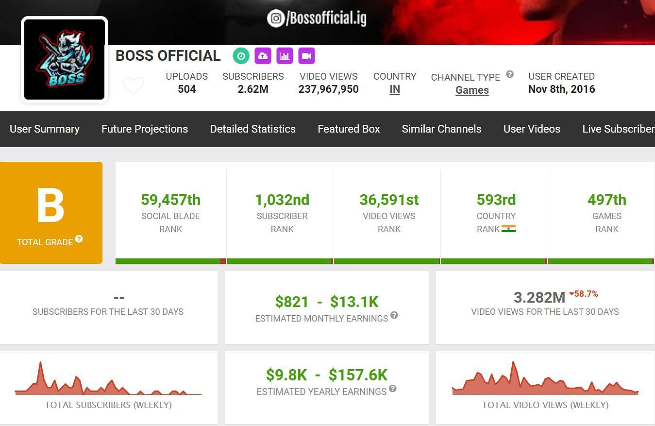 Yash is part of the famous "Boss" guild and runs the Boss Official channel, boasting 2.62 million subscribers. He regularly uploads gameplay and often uploads content to bring positive change to the Free Fire community.