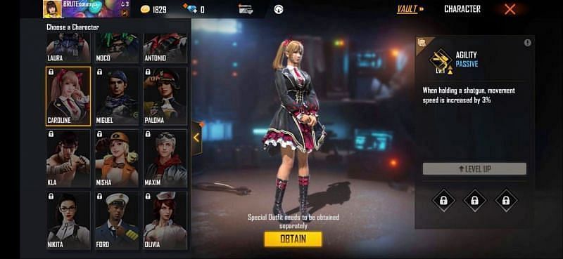 Caroline is a passive character in Free Fire, and her ability is called Agility. The skill increases the movement speed of players by 3% when they are holding a shotgun.