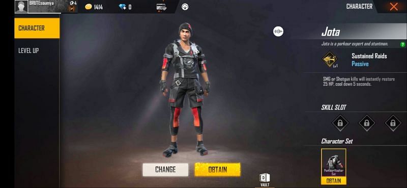 As his in-game description states, Jota is a parkour expert and stuntman who has a passive ability called Sustained Raids.