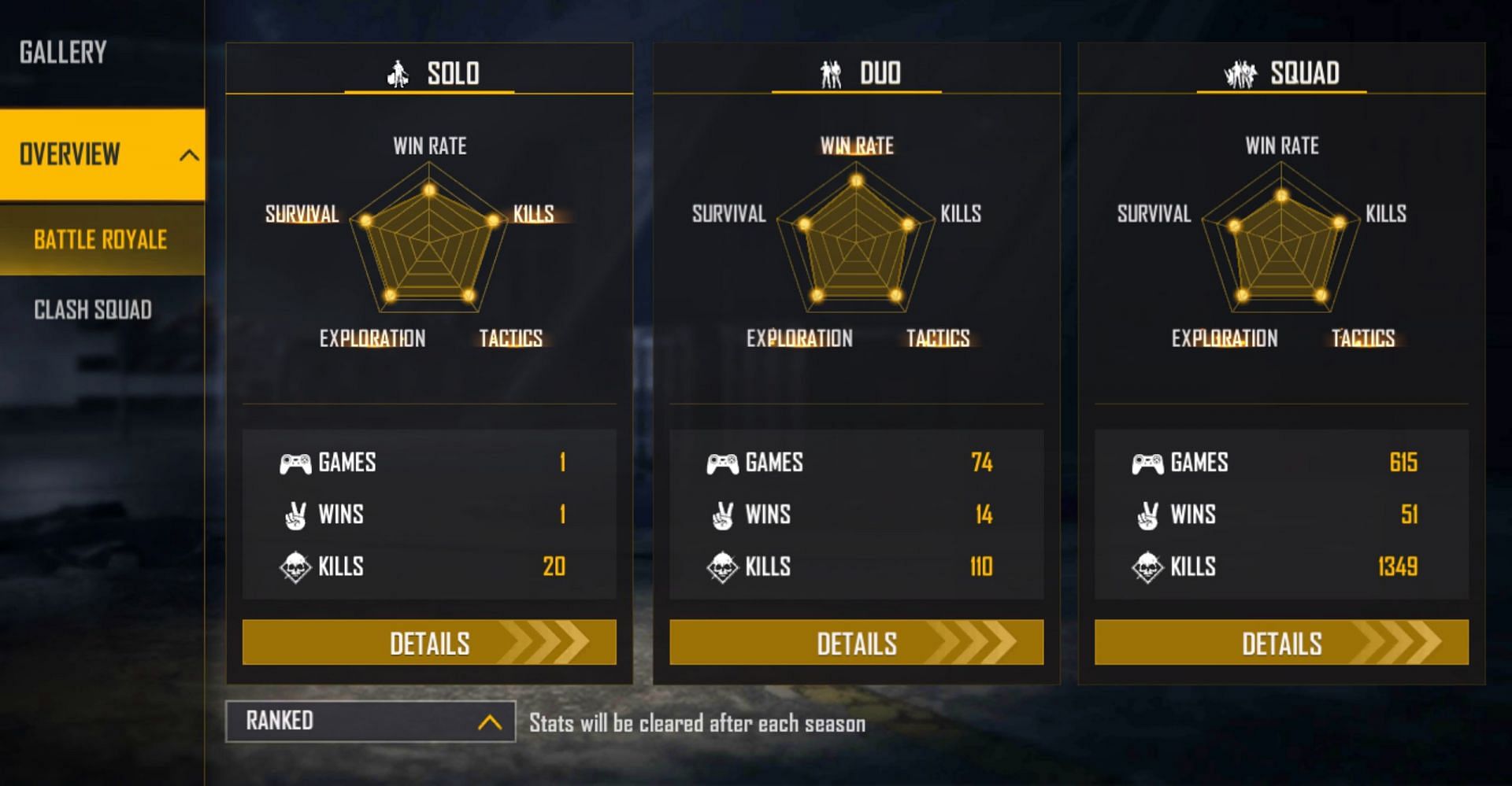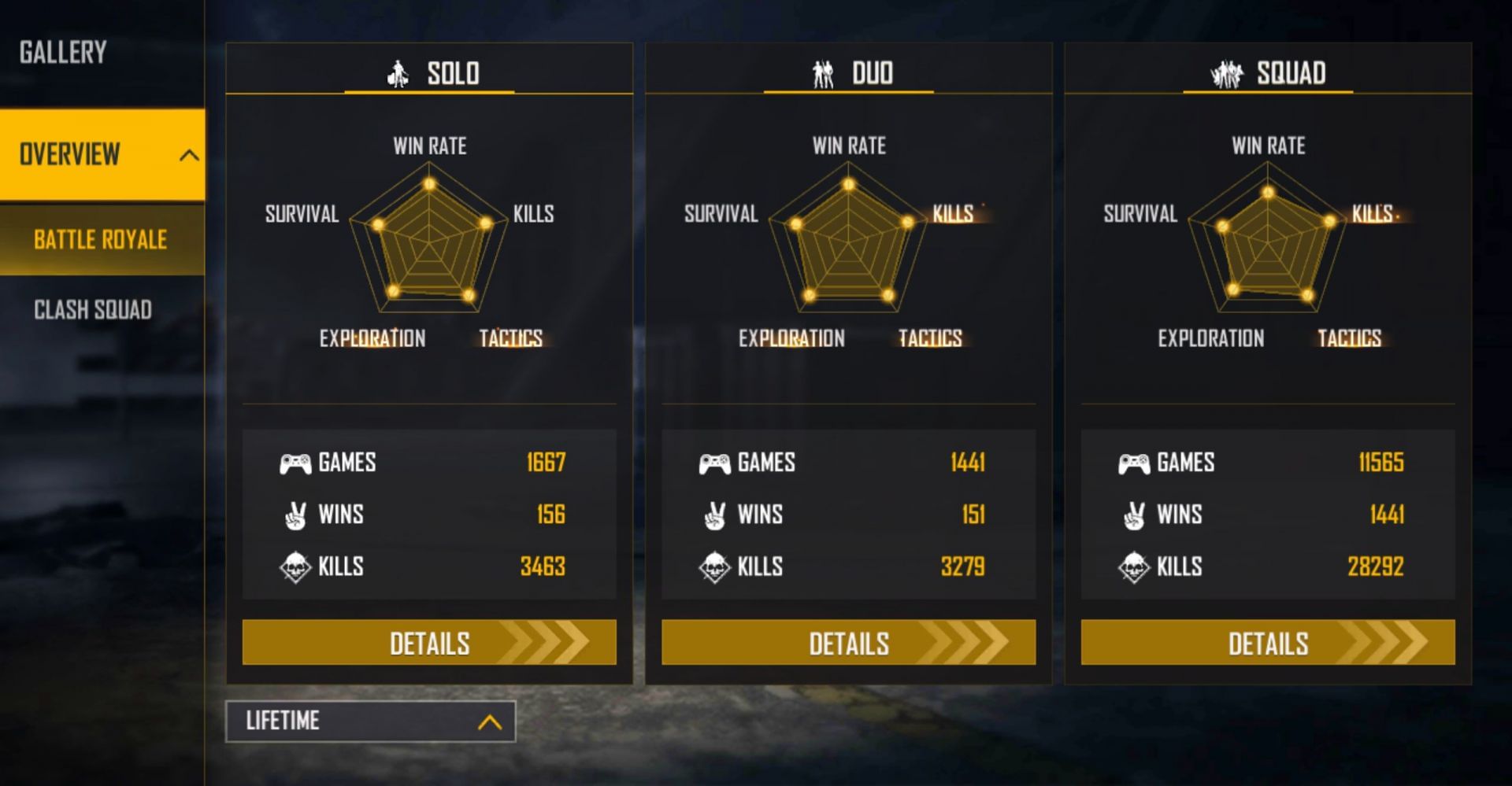 Colonel has featured in 615 squad matches and secured 51 Booyahs, sustaining a win rate of 8.29%. He has acquired 1349 eliminations, retaining a K/D ratio of 2.39.