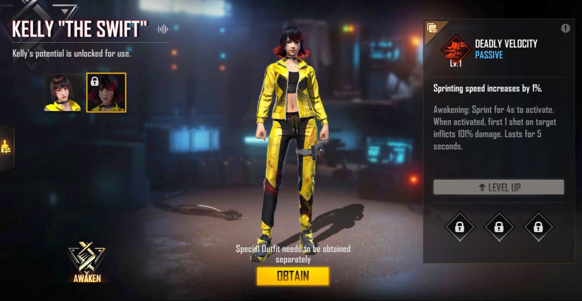 Elite Kelly was the first awakened character in Free Fire and had Deadly Velocity. However, after the changes brought in after OB27, the awakened skills also carry the effect of the original character skill, genuinely providing an advantage.