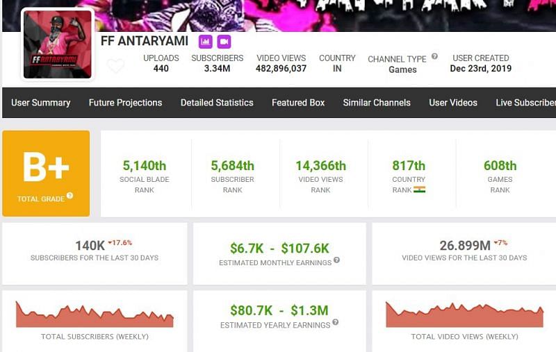 According to Social Blade, in the previous 30 days, FF Antaryami has accumulated 140 thousand subscribers and 26.89 million views.