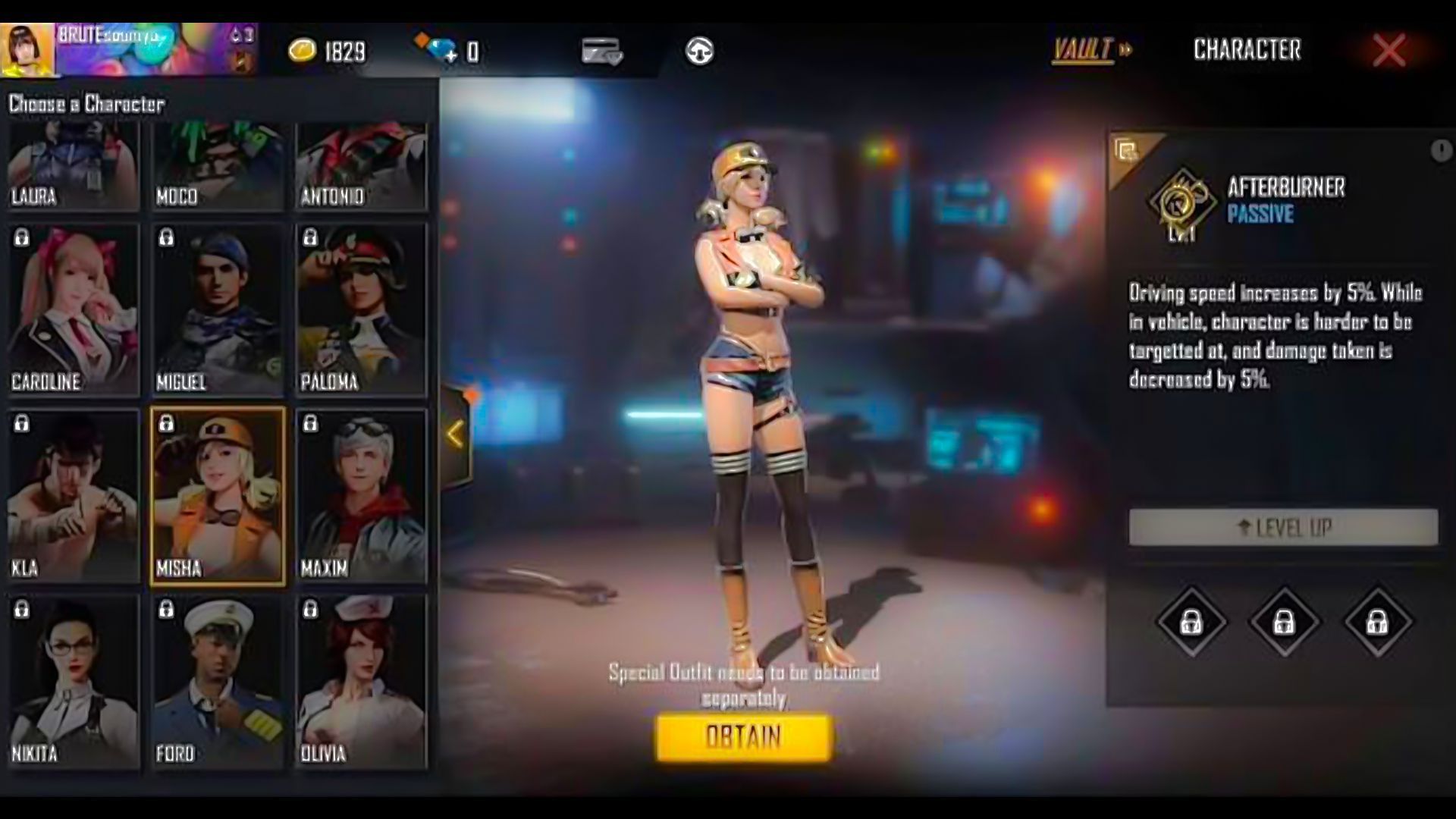 Misha increases the driving speed and reduces the damage taken by players inside the vehicle.