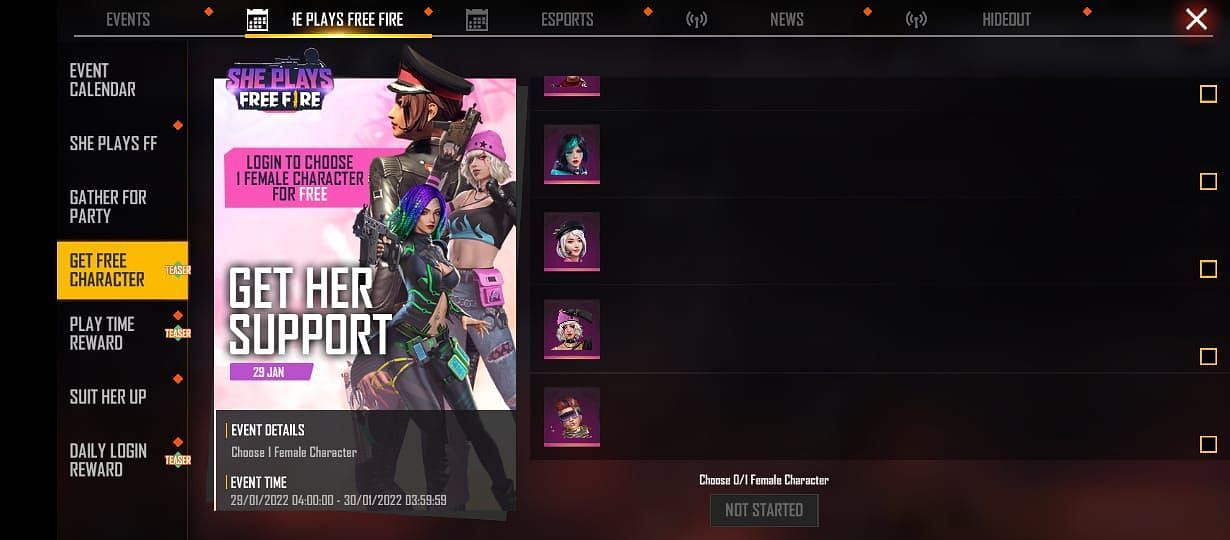 However, to celebrate the female characters, the Battle Royale game has come up with an event called “She Plays Free Fire,” where players can pick female characters for trial and claim any one of them for free.