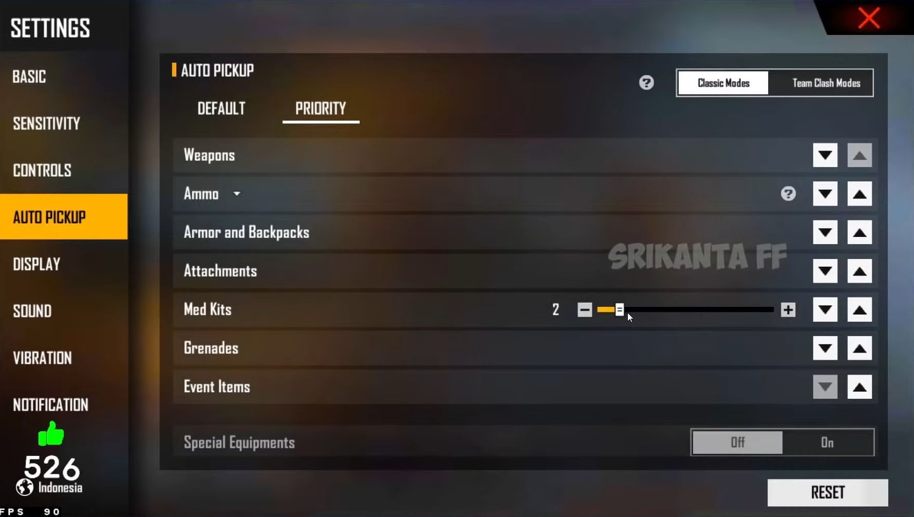 Multiple new options have been added to the settings section, especially the auto-pickup section. A new priority option has been incorporated. Players can now set the quantity of a particular item they wish to pick up in a given match. Moreover, these settings can be set indicidually for classic mode and team clash modes.