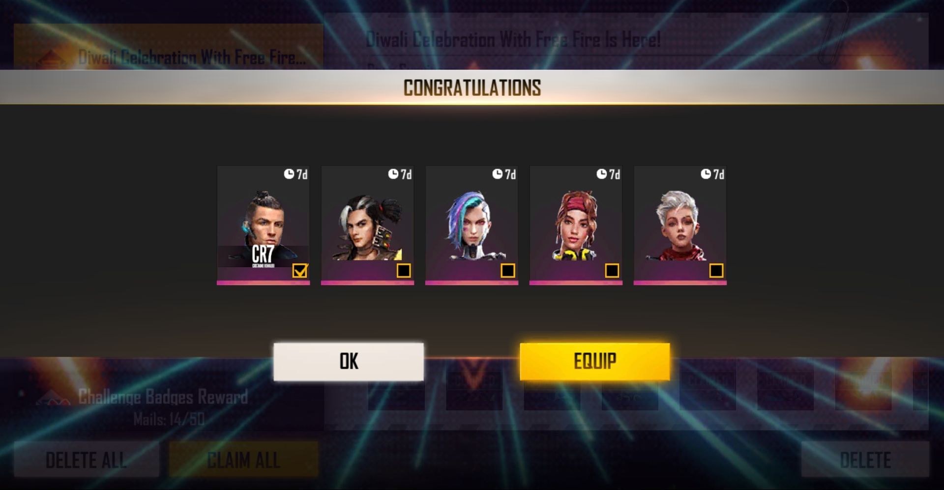 “Diwali is nearing, and as a second welcome gift from the Free Fire team – enjoy 15 free character trial for seven days! Join us till 11 November for many more exciting rewards. Don’t forget to claim your free Magic Cube on 4 November!”