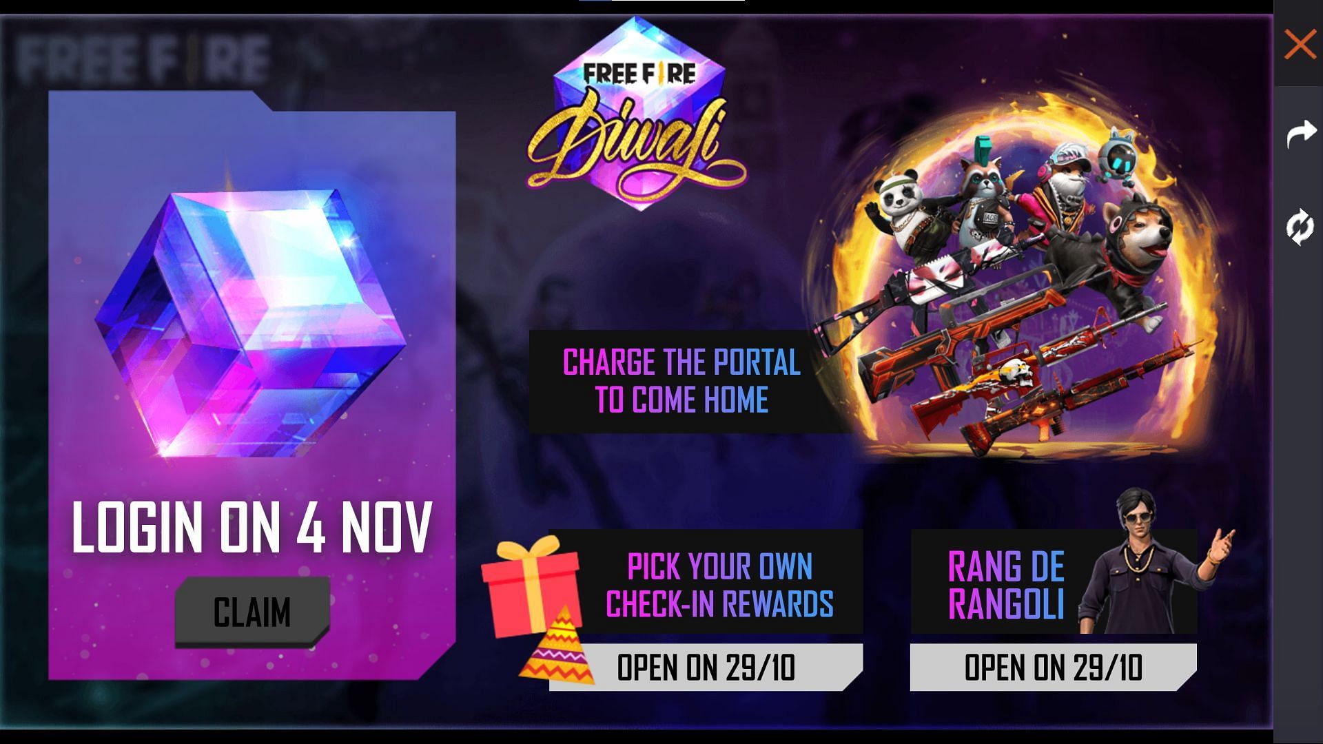 Step 1: Users can boot up Free Fire and open the Celebrate Diwali tab in the events section.