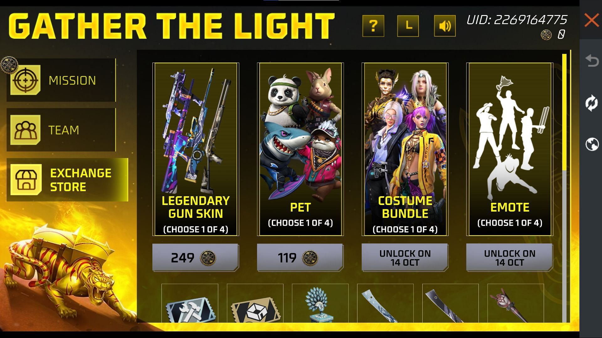 Steps to exchange Light tokens for free gun skins, pets, and more