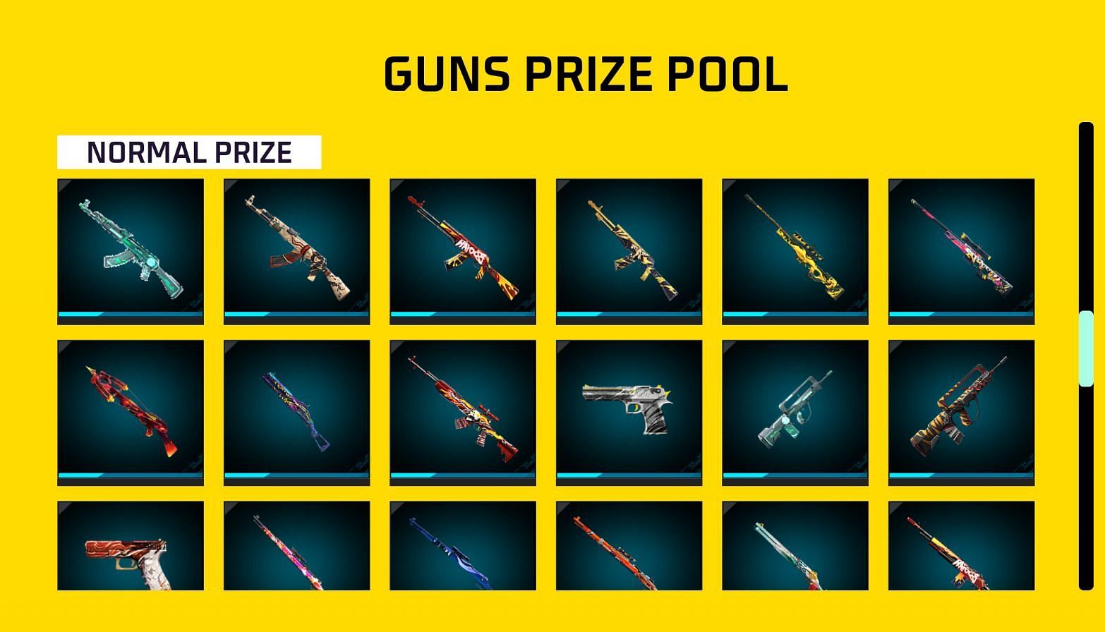The Free Fire MAX Gift of Light event offers 100 bundles and 100 gun skins, with 40 of each available in the premium ones. The complete list includes the following: