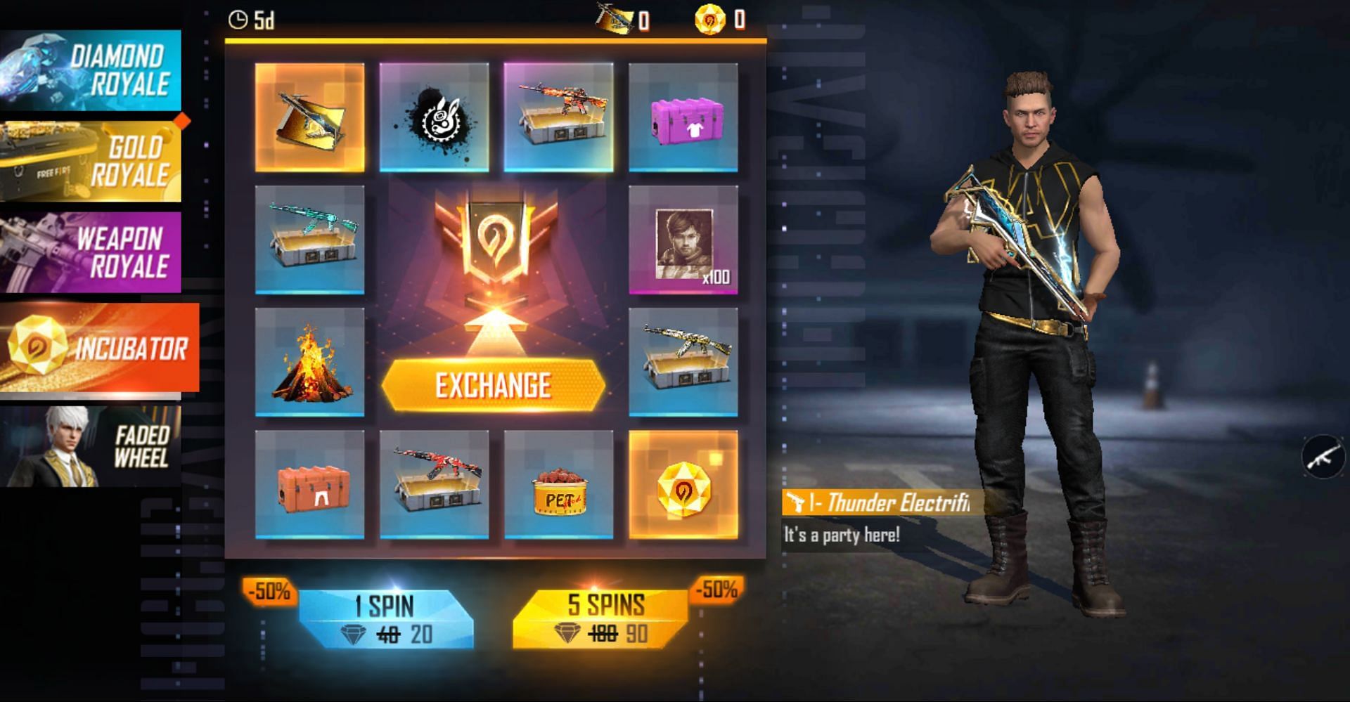 The 50% discount on Free Fire MAX Groza Beatz Banger is only available on 3 March 2022. The discounted rate for the spins is 20 diamonds for a single spin, and the price of five spins is set at 90 diamonds.
