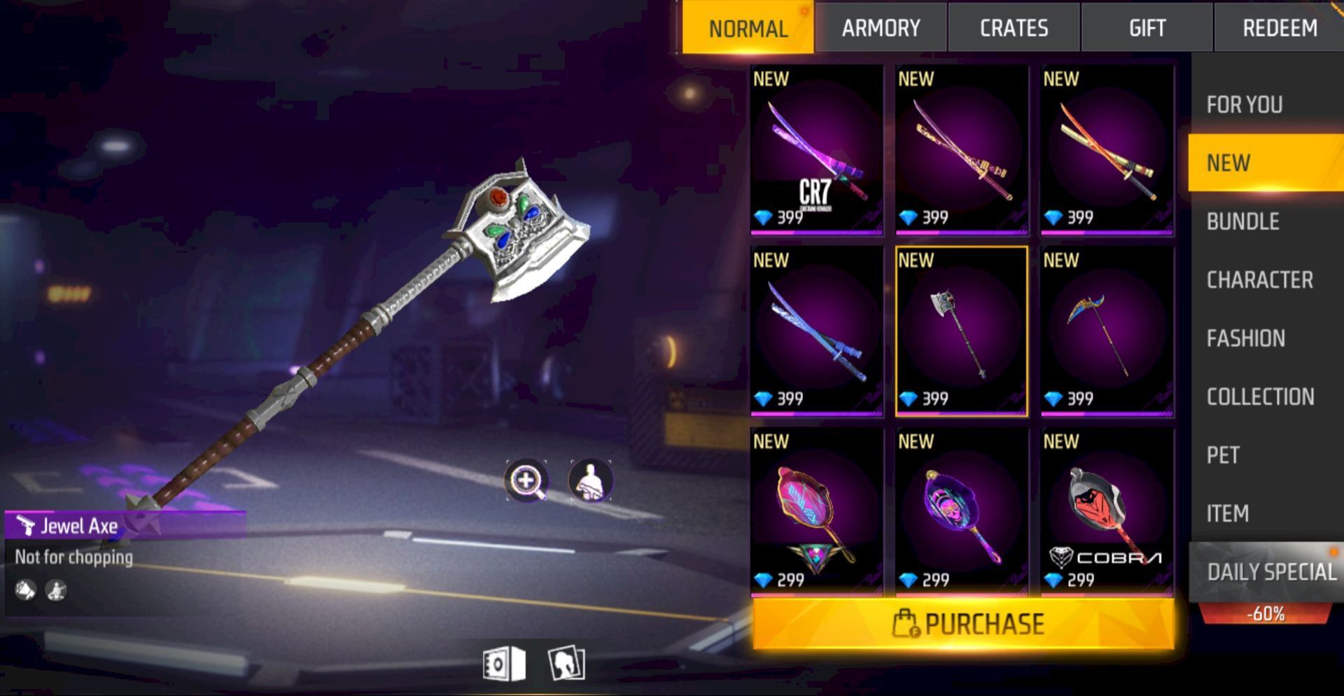 A total of 20 melee weapon skins are now part of the Free Fire MAX store and include skins for katana, pan, and scythe. Players can acquire the following items priced between 299 and 499 diamonds.
