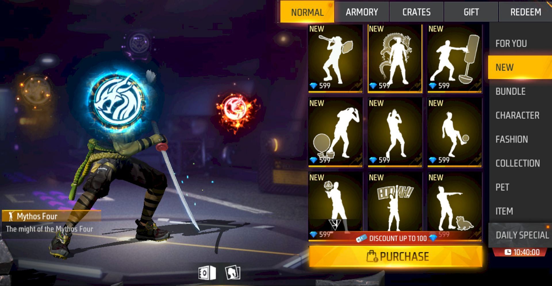 Players can directly access the store and spend diamonds to get a few attractive cosmetics. They also have the option to get discounts on items that are priced above a given threshold.