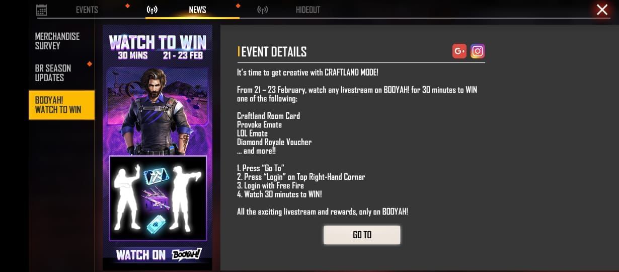 Step 2: They have to head over to the News section and tap on Booyah! Watch to Win.