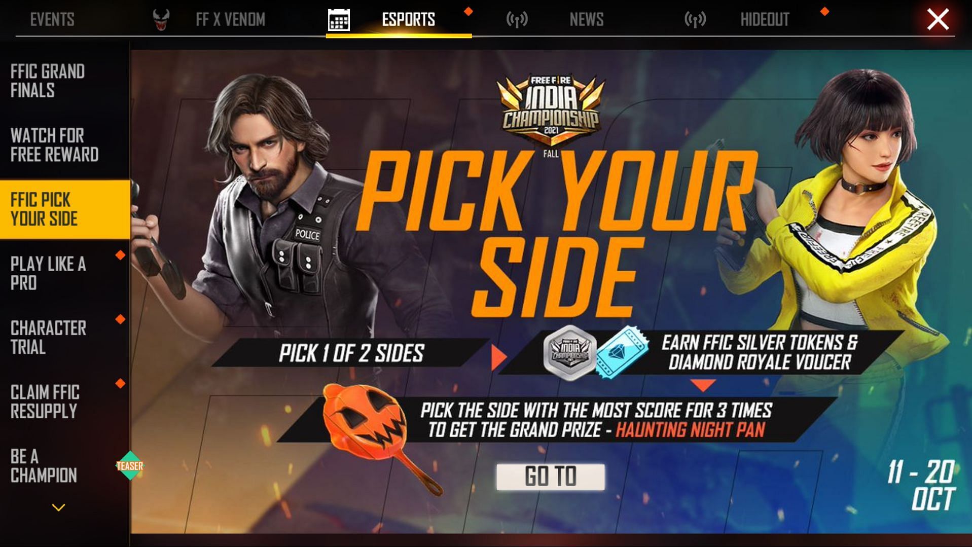 In Pick Your Side, participants should select one of the two sides that they believe will score more points during the various rounds in the FFIC finals. They will receive 3x FFIC Silver Tokens and a Diamond Royale Voucher for each correct answer.