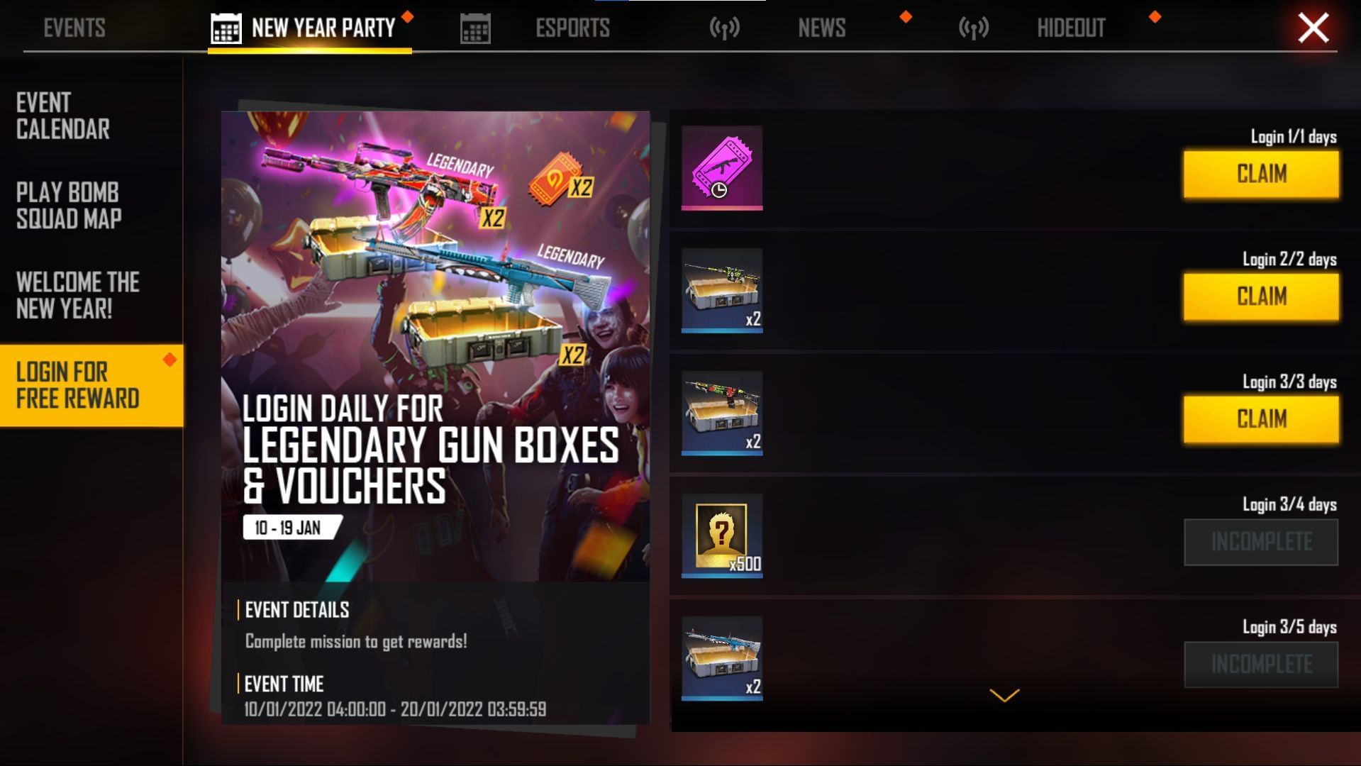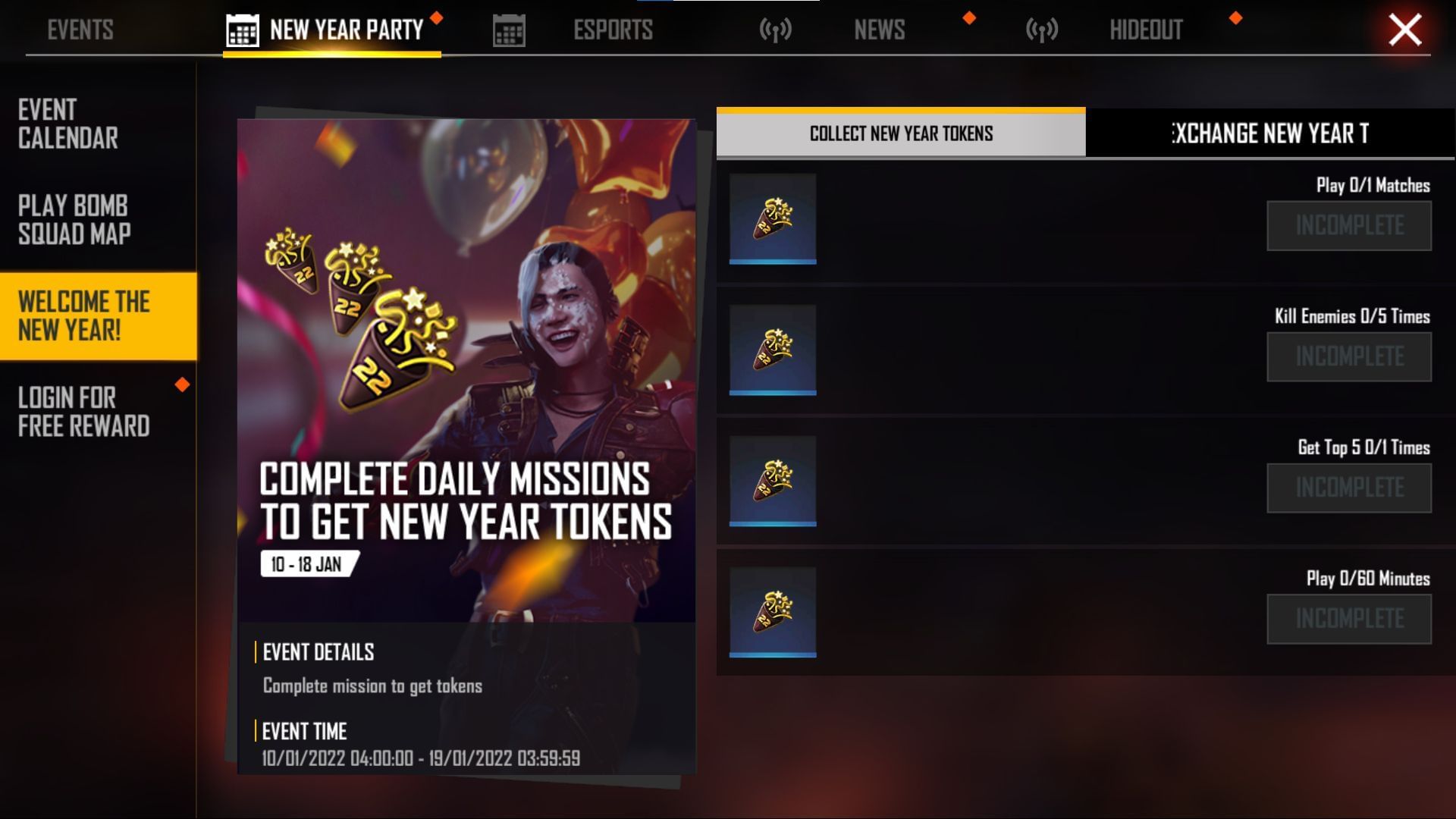 This event has been running for quite some time in Free Fire. To begin with, gamers are asked to complete the tasks. Doing so will be rewarding them with the unique ‘New Year 2022’ tokens.
