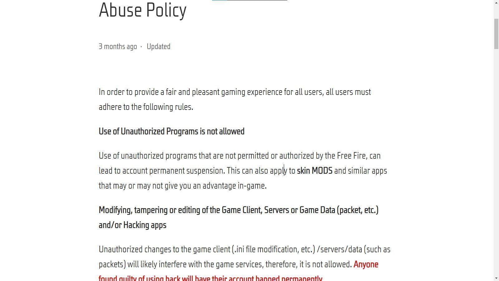 According to Garena's FF abuse policy, use of any unauthorized programs that are not permitted by Free Fire is not allowed. If users are found guilty of breaching this policy, their accounts, including devices, may be banned permanently from playing the title.
