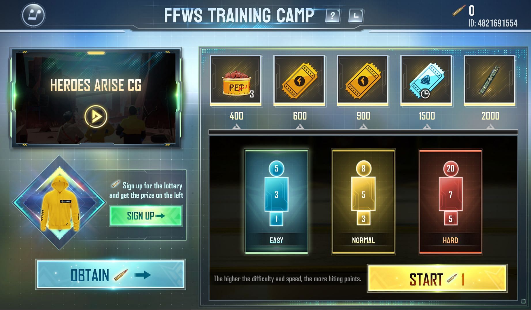 FFWS Training Camp is the first event implemented around the biannual grand tournament. It features a shooting minigame where gamers can participate using tokens. They can select from three different modes, each offering a different scoring system, and collect the required points to get the corresponding rewards.