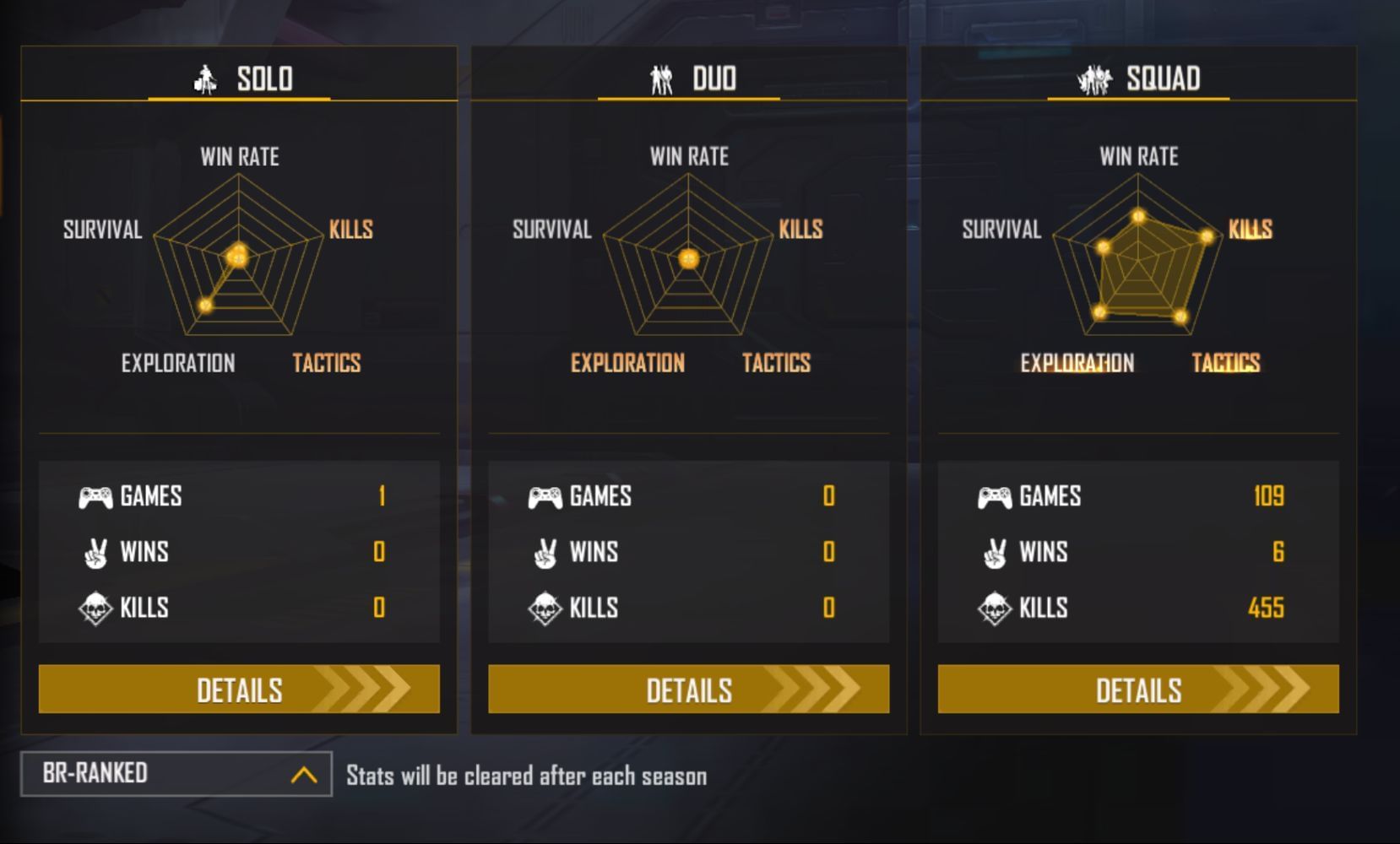 He has chalked up 6 Booyahs in 109 squad games, acquiring a win rate of 5.50% in the process. Frontal Gaming has taken down 455 opponents, with a K/D ratio of 4.42.
