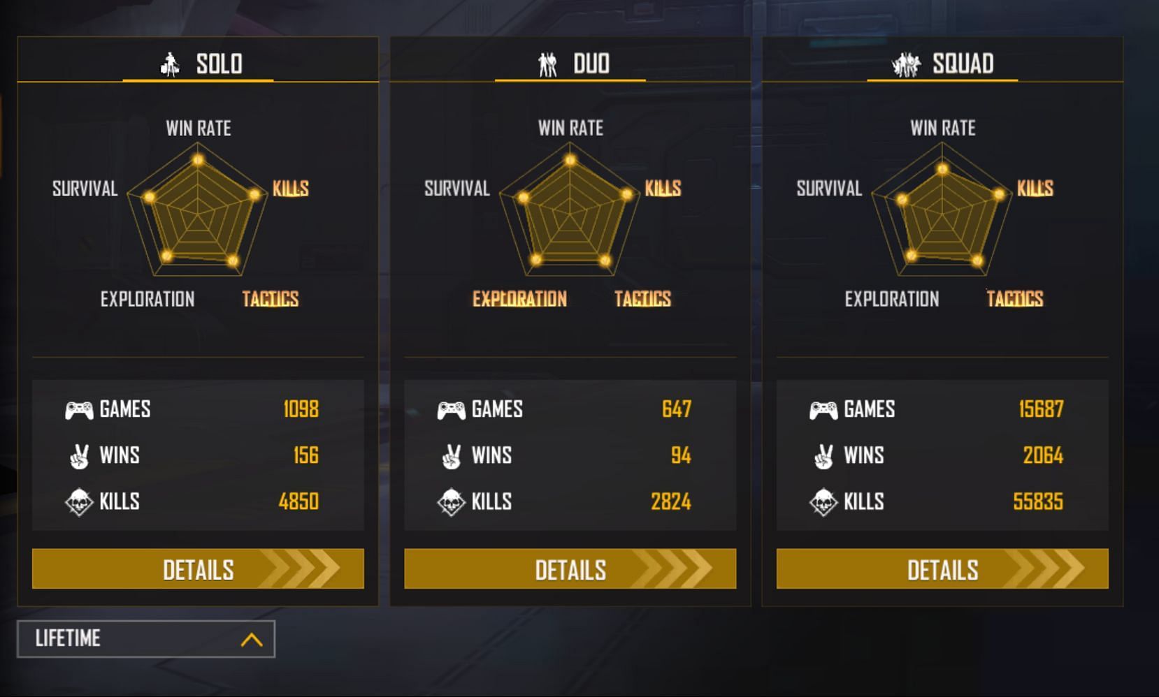 Additionally, the professional player has attained 94 first places in 647 duo games, accumulating a win percentage of 14.52%. He has recorded 2824 kills, retaining a K/D ratio of 5.11.