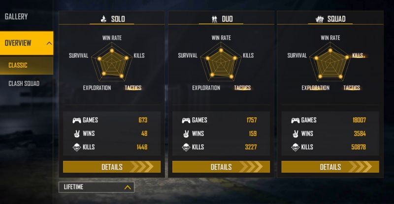 Gaming Tamizhan has won 48 of the 673 solo matches that he has played, making his win rate 7.13%. He eliminated 1448 opponents at a K/D ratio of 2.32 in this mode.