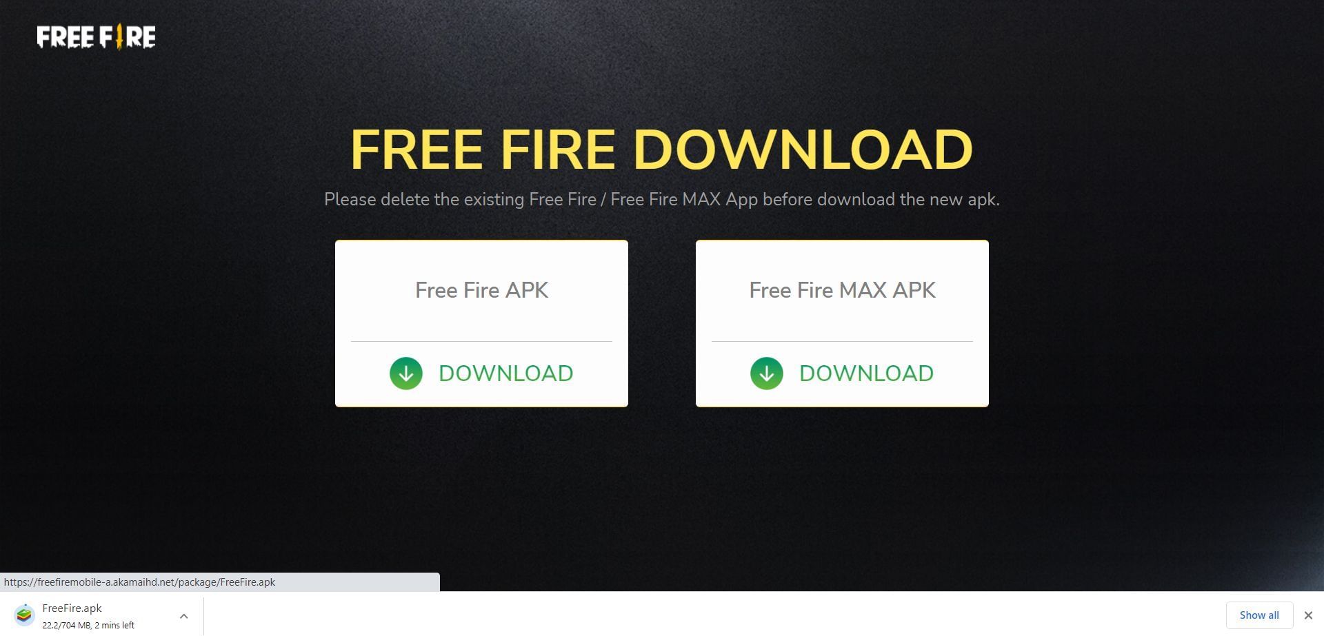 Step 2: There are two download links available on the page; choose "Free Fire APK" to initiate the process.