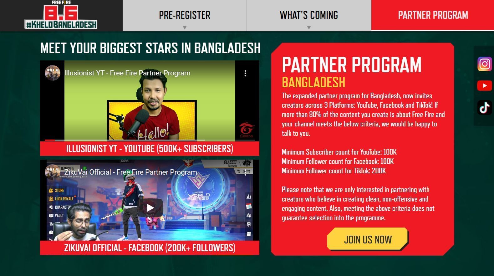 Indian applicants will have to wait for India's dev team or moderators to continue the application process again. However, creators from other servers like Bangladesh, Pakistan, etc., can still apply for the FF program as follows: