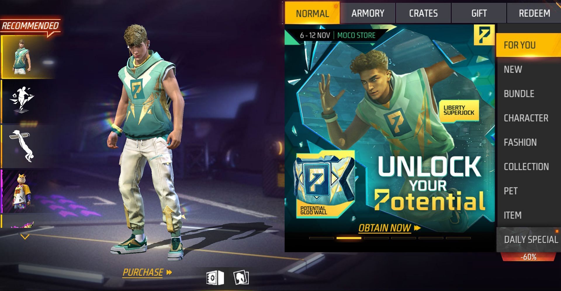 Step 1: Open your account in Free Fire MAX and select the store option on the left side of the screen.