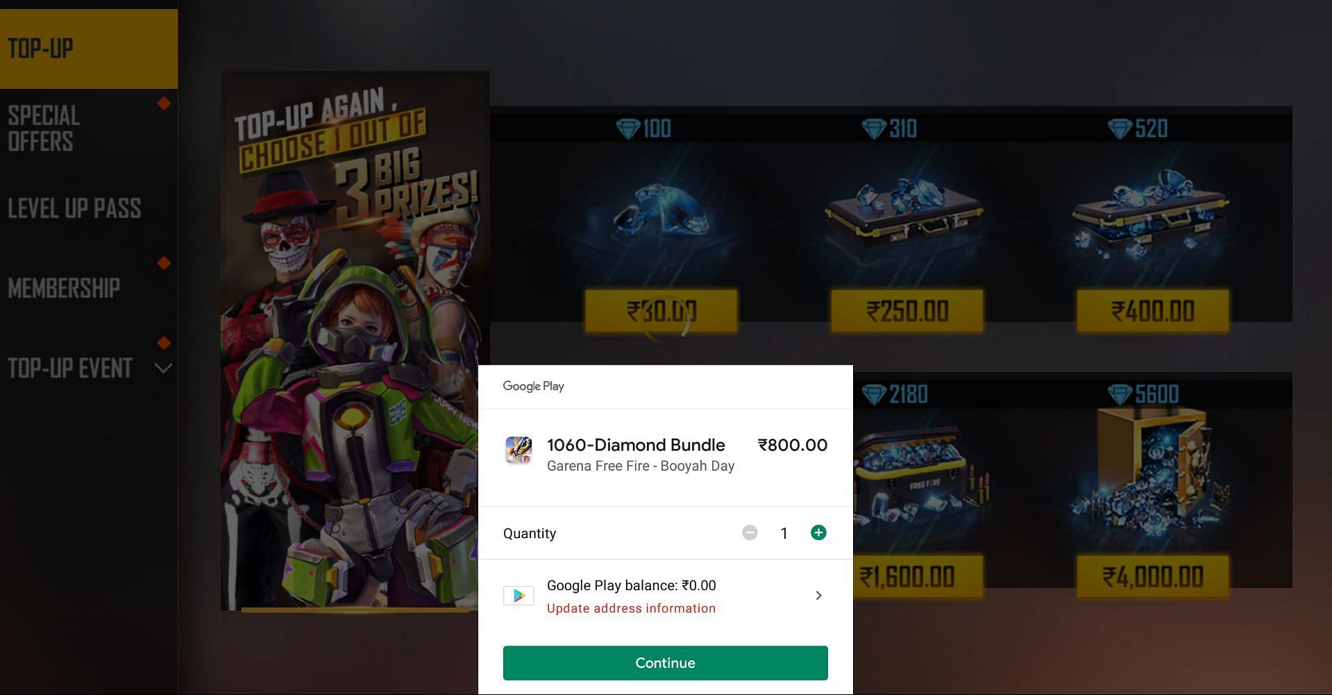 Step 3: The required number of diamonds will be credited to the account upon completing the purchase.
