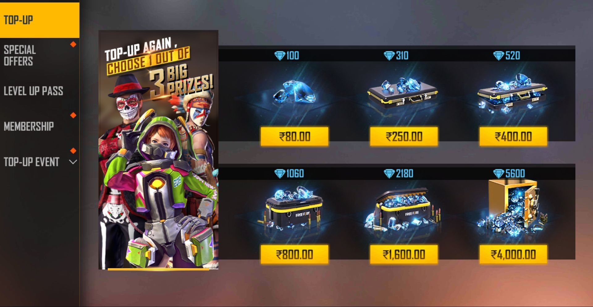 Step 1: To begin with, gamers have to visit the top up center in Garena Free Fire.