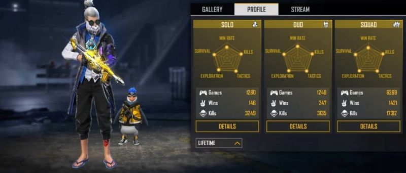 He has also featured in 1240 duo games, winning 247. The content creator has notched over 3135 eliminations, maintaining a K/D ratio of 3.16. When it comes to the solo mode, he has played 1280 games and won 146 of them. With 3249 kills, he has a K/D ratio of 2.87.