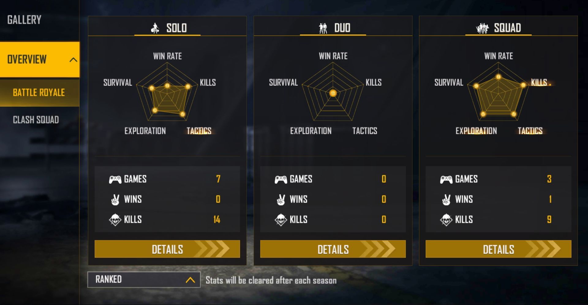 The internet star has not yet played a duo game, but he has participated in seven solo games, totalling 14 frags with a K/D ratio of 2.