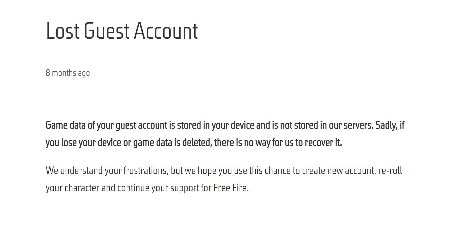 However, once the data is deleted, there is no way to recover it. Garena has explicitly stated the following in the support section relating to the lost guest account: