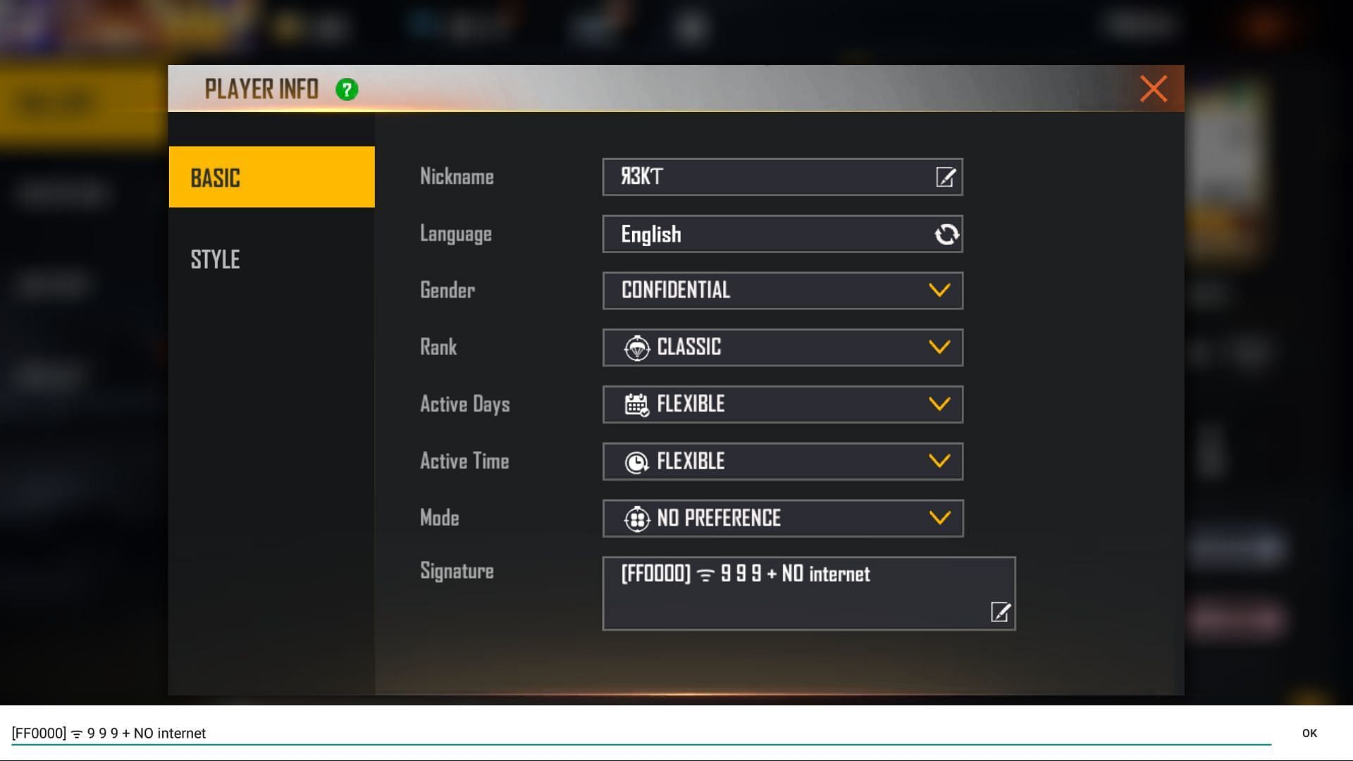 Note: After the Free Fire OB31 upgrade, the user's signature with colors and symbols will not be visible. However, other users will be able to see the changes when they visit their profile.