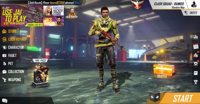 Step 1: First, open Free Fire and equip a Jai character and play five games.