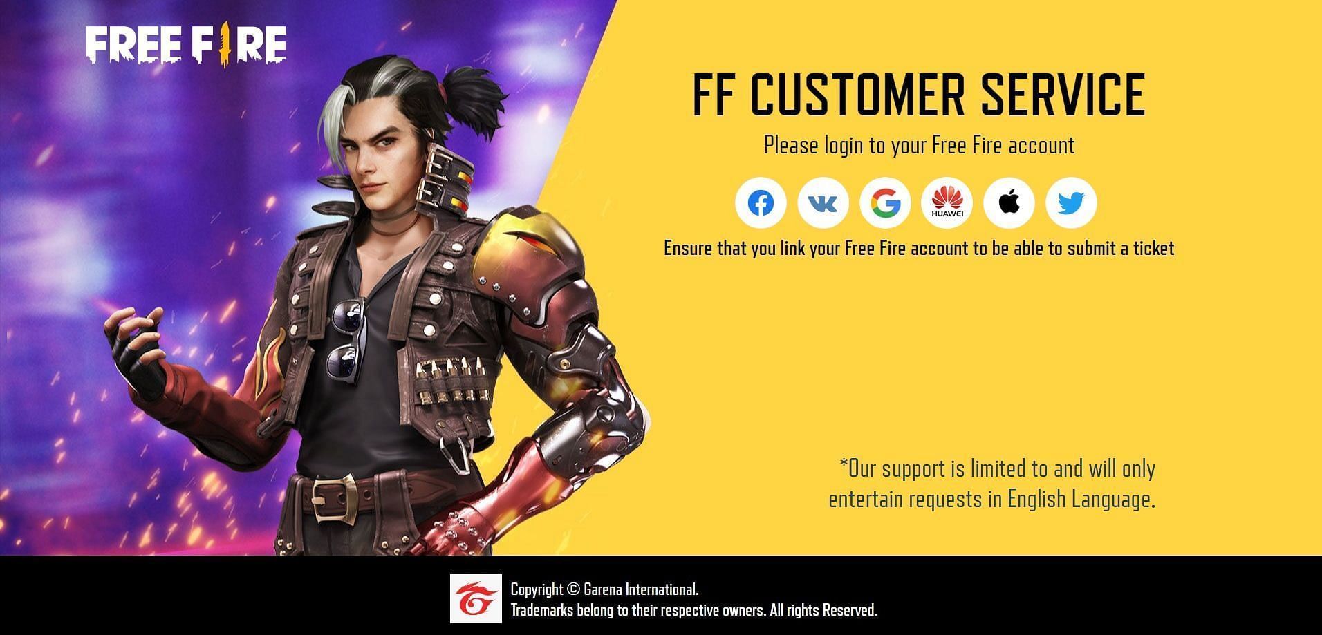 Step 3: On the landing page, you will need to link your FF account to be able to submit a ticket. To do so, tap on any of the available login options. You must only select the login option with which you have associated their FF ID.