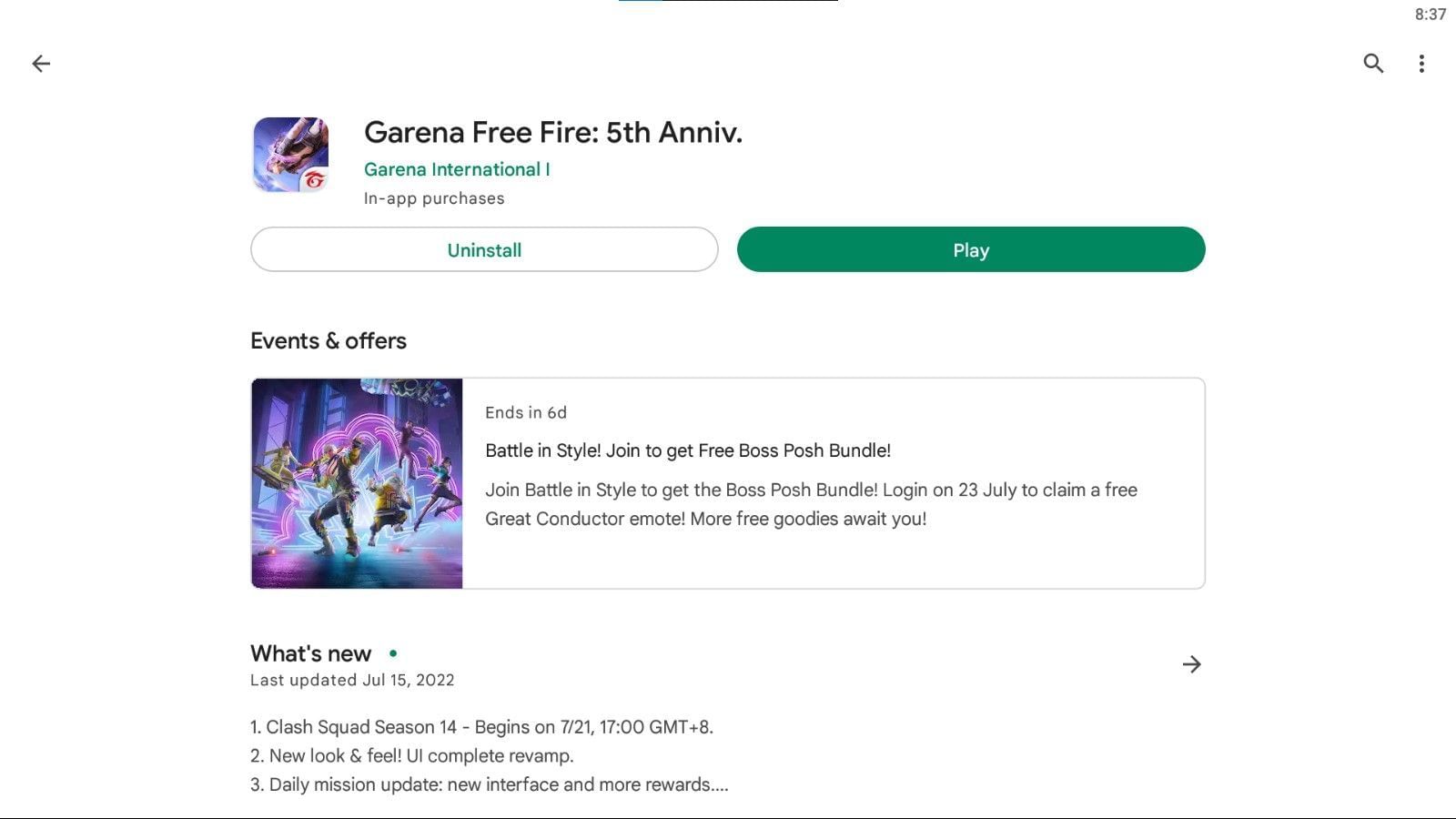 Step 4: If users already have an older version of the game installed, they should see an 'Update' button; otherwise, it will show 'Install.' Tap on either to proceed.