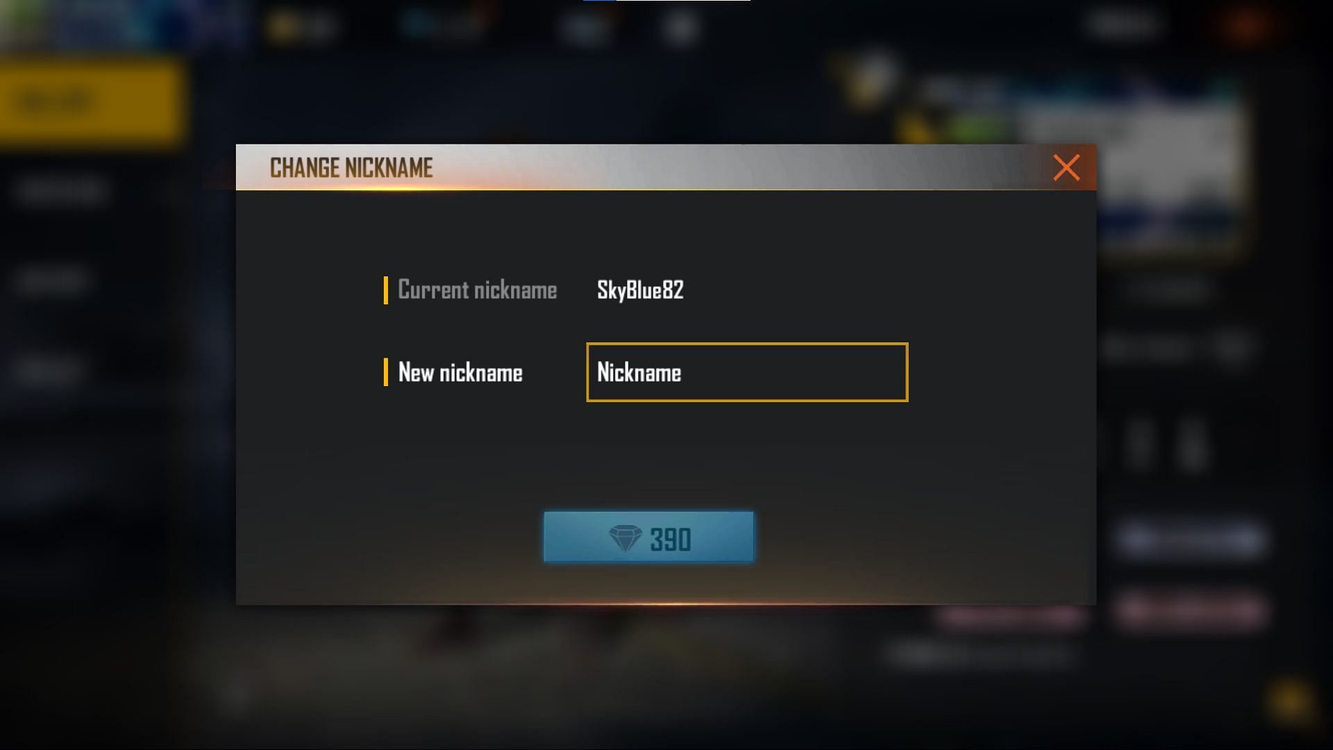 Step 3: A pop-up will show up, where they need to input the required name and press “390 diamonds” to change the name.