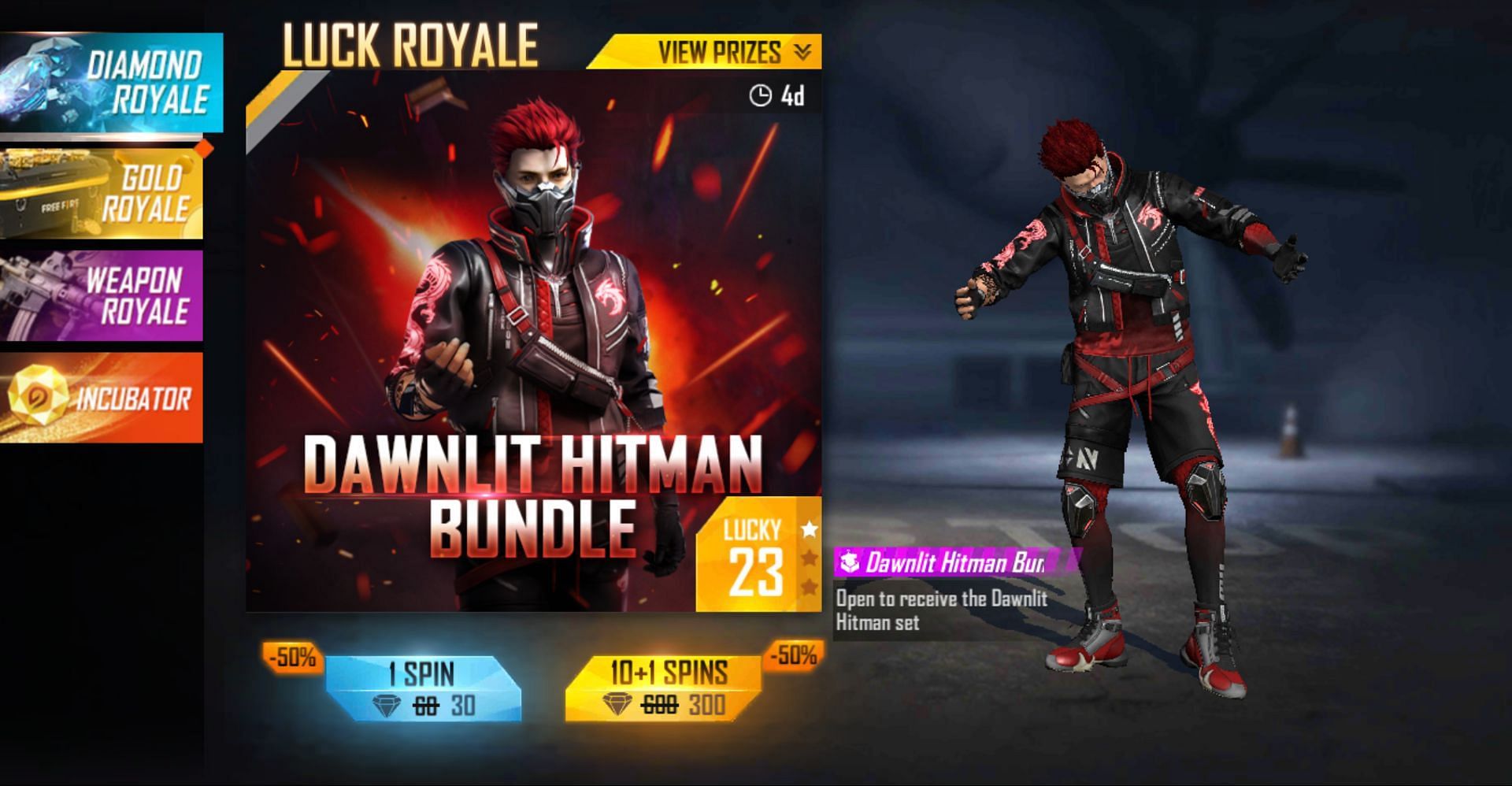The 'Dawnlit Hitman Bundle,' an appealing male outfit set, is available to players in the current Diamond Royale. However, it is set to conclude within a few days, and Garena has now offered a hefty 50% discount, exclusively for today.