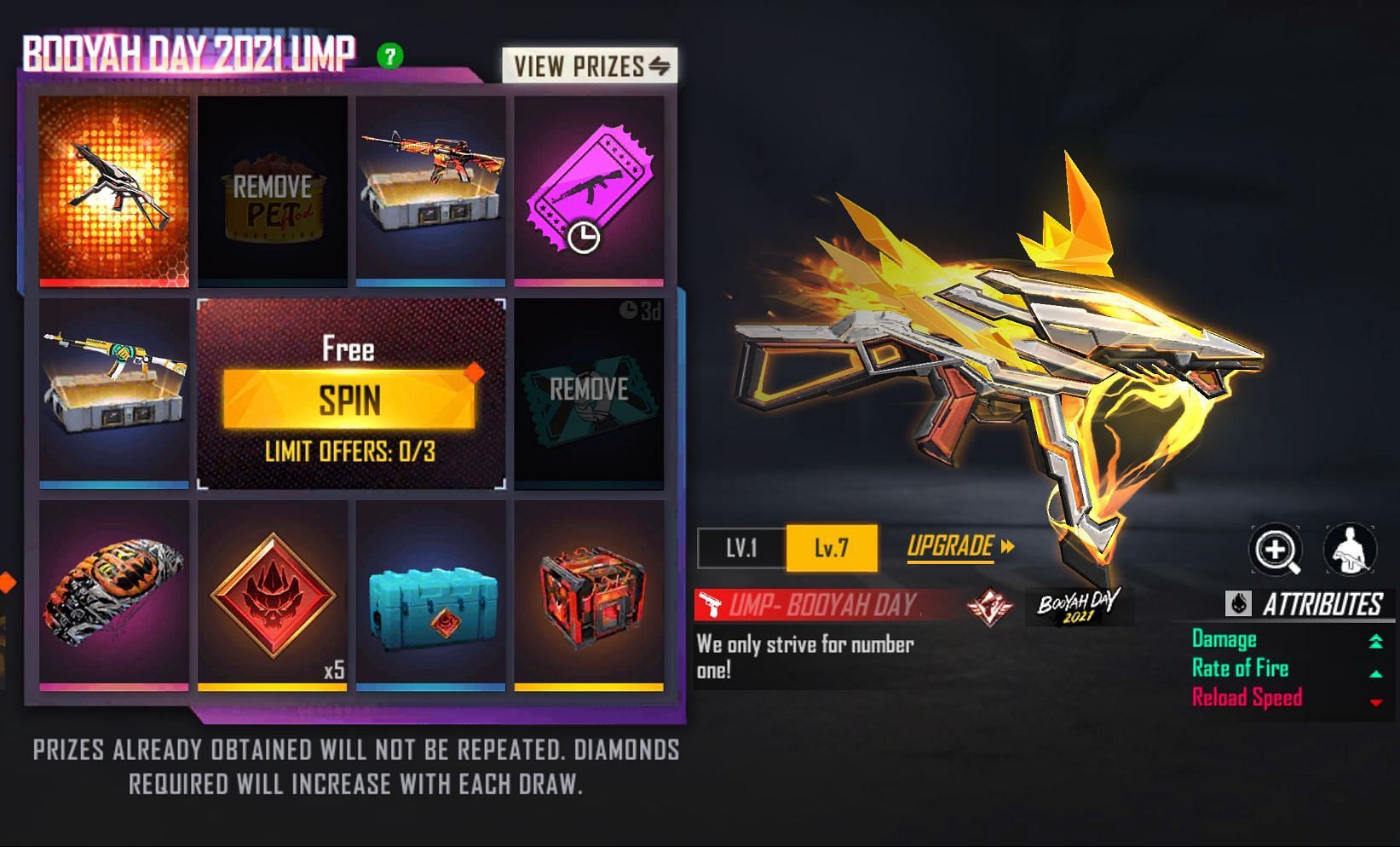 The items obtained from each spin will be grayed out, implying that users will receive UMP - Booyah Day 2021 within eight spins.