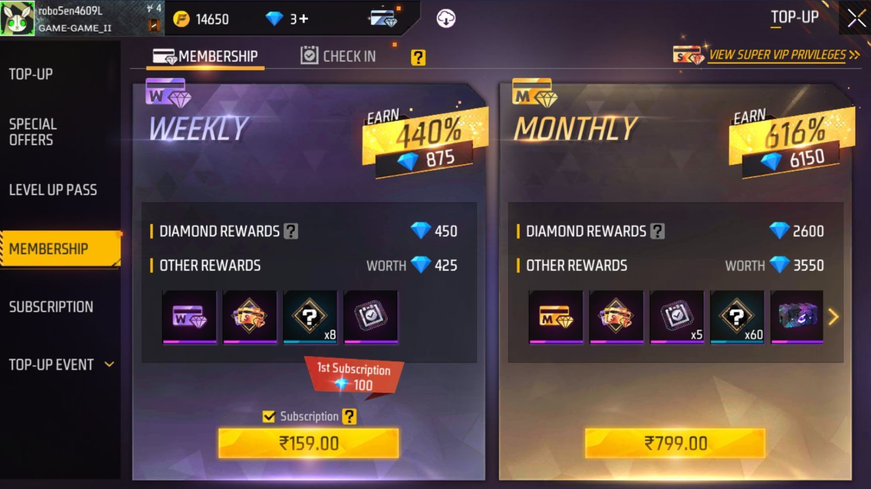 Here's how to buy a membership plan in Garena Free Fire or Free Fire MAX: