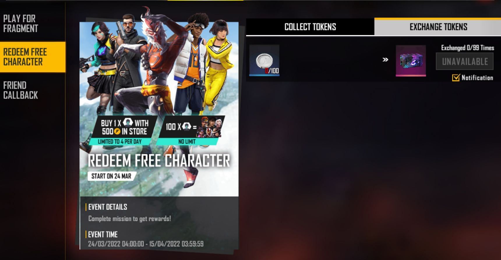 Upon collecting 100 tokens, players should tap on “Exchange Tokens” in the “Redeem Free Character” event. The redemption will provide users with a “Character Choice Crate” (99 redemption limit) that they can open to claim their favorite character.