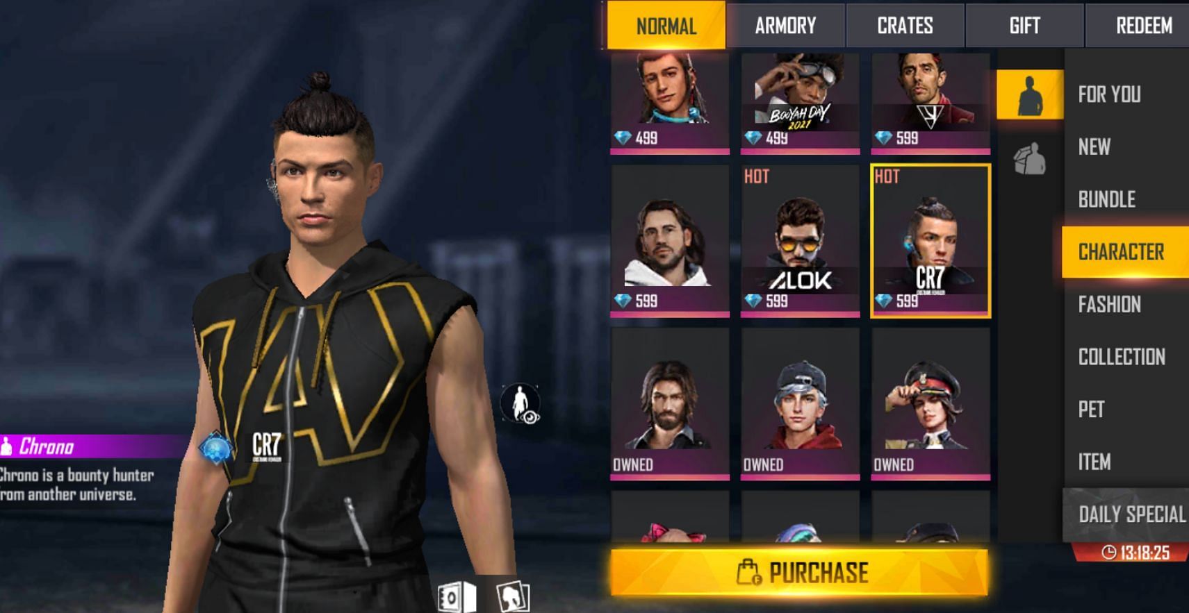 He made his way into the game in December 2020 and was a part of the Free Fire x Cristiano Ronaldo collaboration.