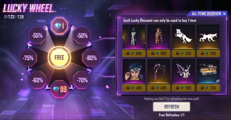 Lucky Wheel is one of the new events in Free Fire, which started on July 23rd. It provides many in-game items, including emotes, bundles, pets, gun crates, and emotes, for highly discounted rates.