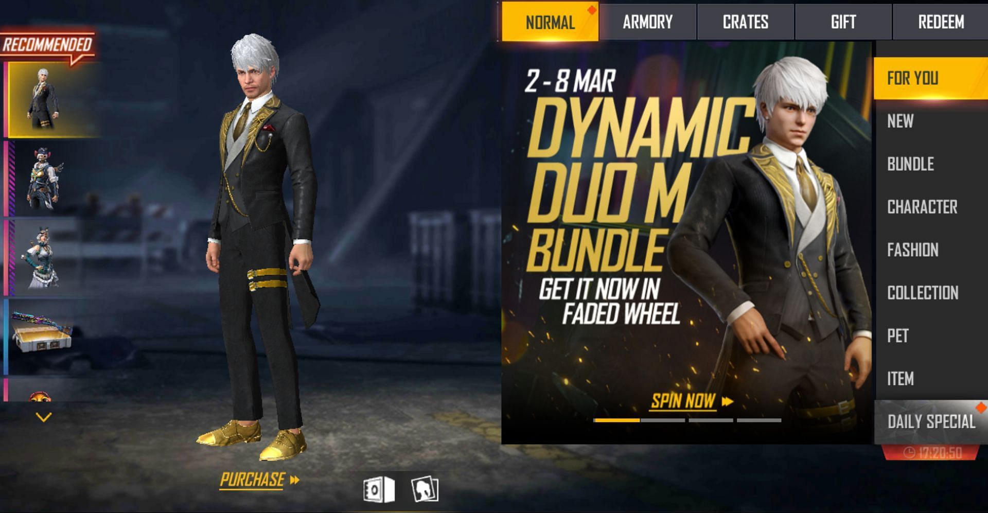 Simple guide to getting Dynamic Duo M bundle from Faded Wheel in Free Fire MAX