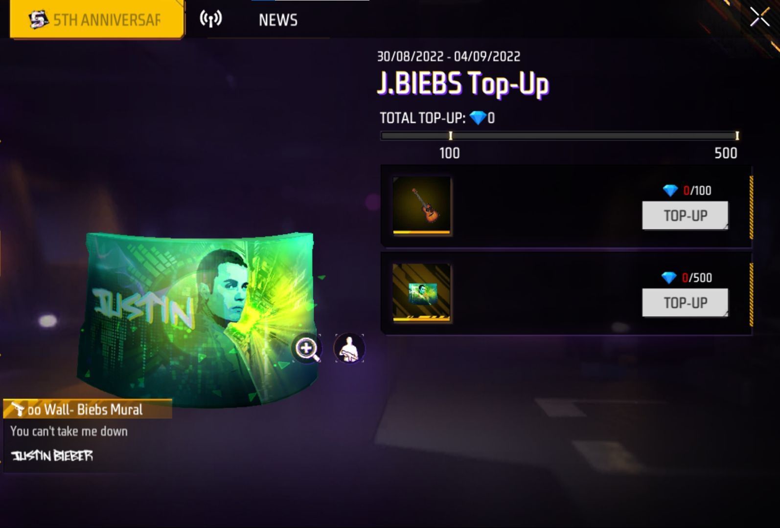 Garena launches new J.Biebs Top-Up event in Free Fire MAX