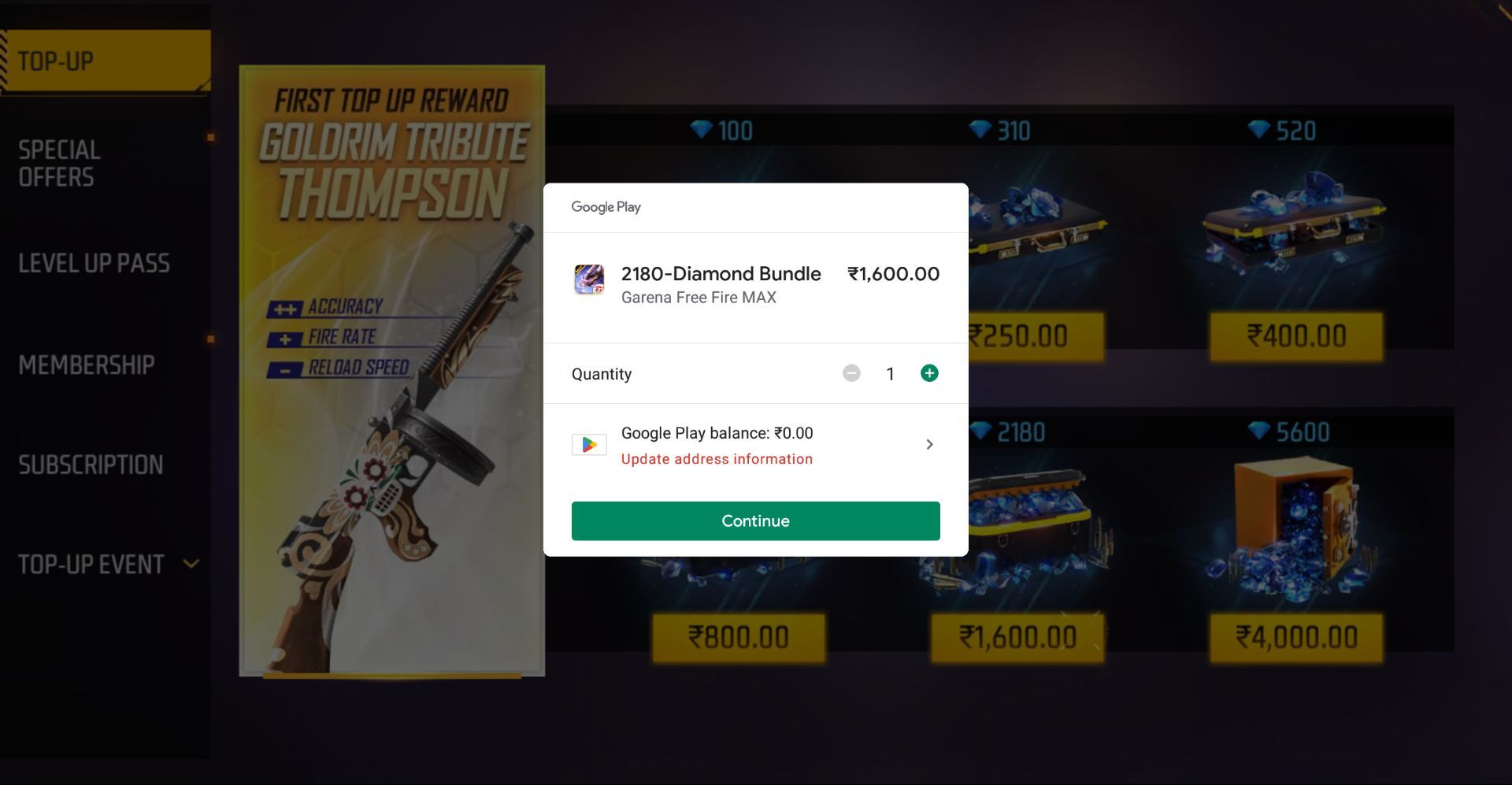 Step 2: Users can click on the button below the preferred diamond pack and complete the transaction by making the payment.