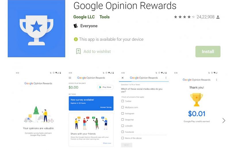 Google Opinion Rewards is widely regarded as one of the most effective methods of obtaining in-game currency without paying money. The survey application by Google has over 50 million installs and has a rating of 4.2 stars.