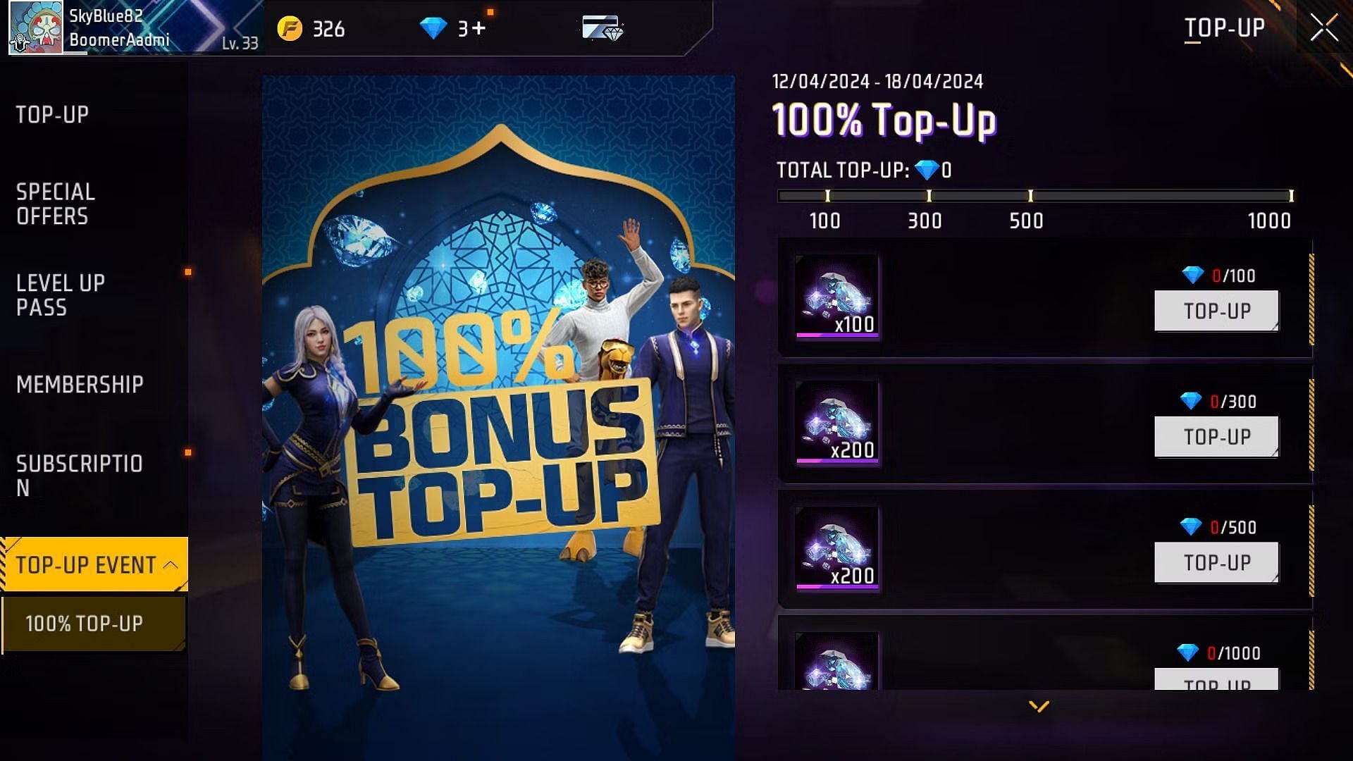 However, it is worth noting that this method requires players to spend real money to get a bonus number of diamonds for free. Regardless, it offers excellent value, and the free diamonds obtained through the 100% Bonus Top-U event can be used for various purposes.